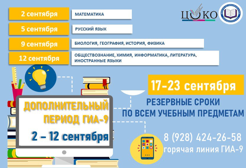 Дополнительный период экзаменационной кампании ГИА-9 в 2025 году будет проходить со 2 по 23 сентября.