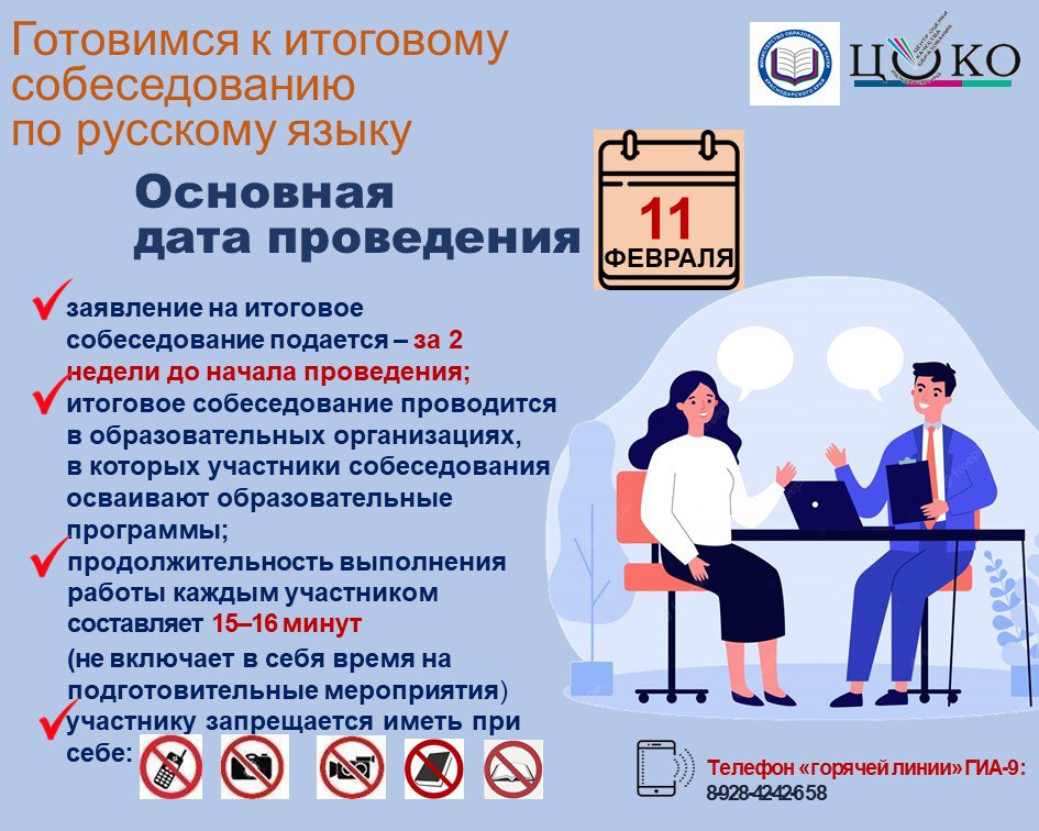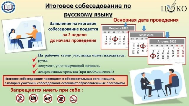 Напоминаем, что 11 февраля 2026 года основная дата проведения итогового собеседования по русскому языку.