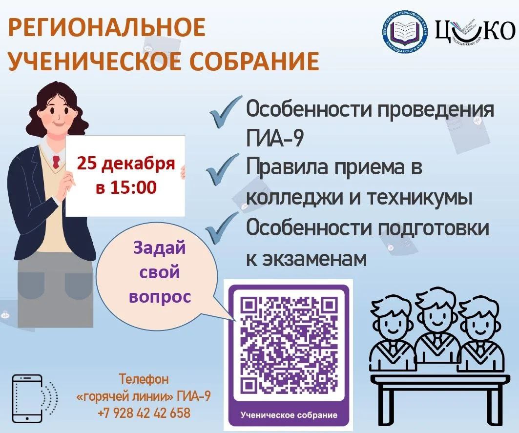 На собрании расскажут об особенностях экзаменационной кампании ГИА-9 в 2026 году, правилах приема в колледжи и техникумы, особенностях подготовки к экзаменам.