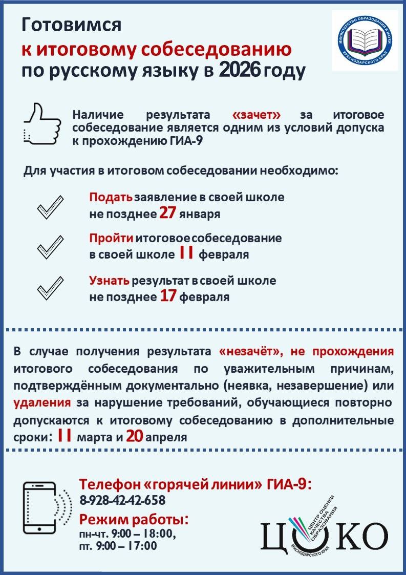 11 февраля 2026 года девятиклассники будут проходить итоговое собеседование по русскому языку. Школьникам нужно успешно справиться с ним, чтобы получить допуск к ОГЭ или ГВЭ.