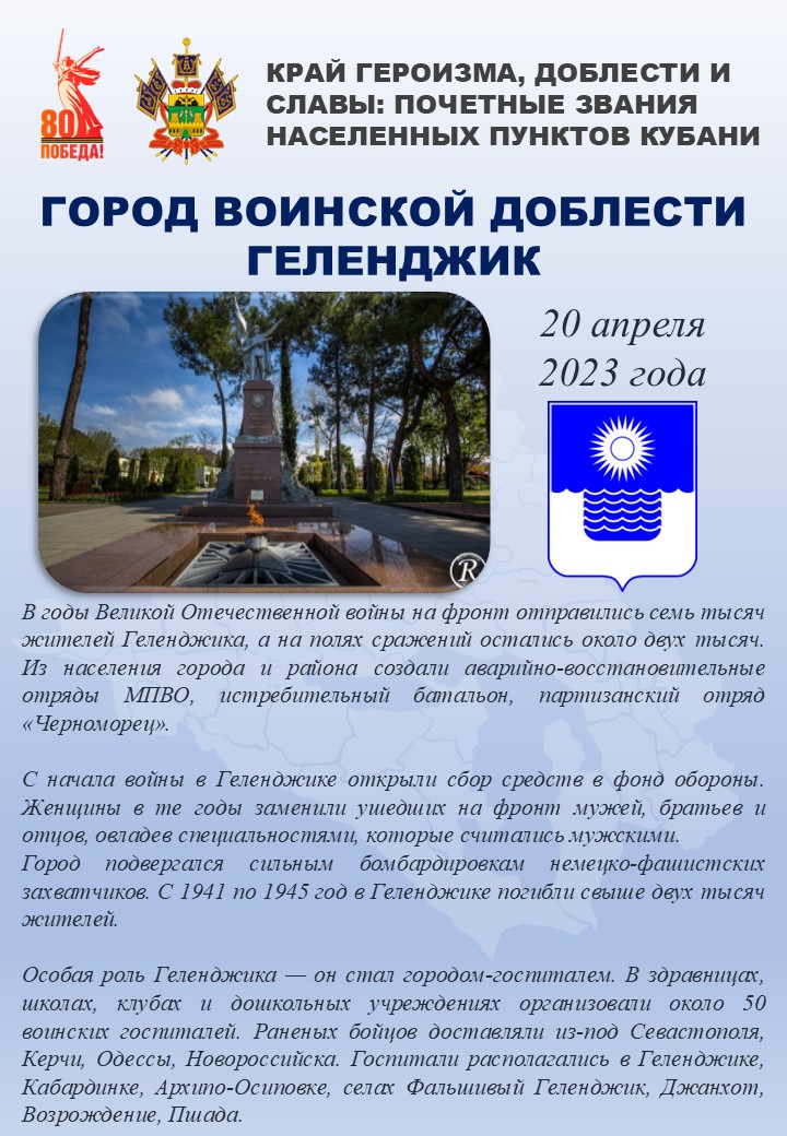 В Год 80-летия Великой Победы и в Год защитника Отечества вспоминаем подвиги земляков, за которые городам и станицам Кубани присвоены высокие статусы