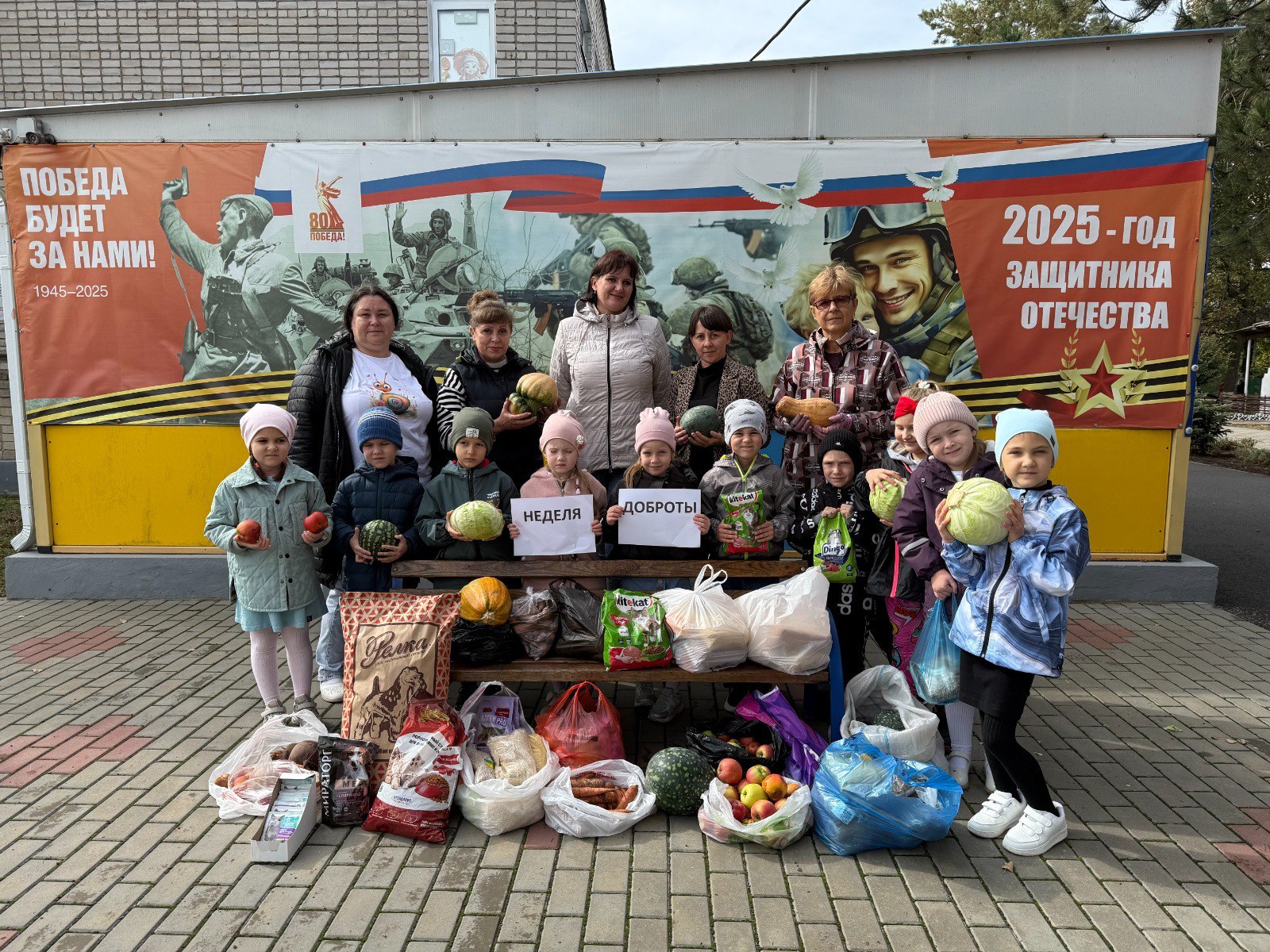 В начале октября отмечается Всемирный день защиты животных – отличный повод поддержать дело семьи Кудиновых – приют для животных. В рамках «Недели доброты» воспитанники детских садов № 1 и № 2 откликнулись на благотворительную акцию. Дети и их родители, педагоги на протяжении нескольких дней собирали овощи, фрукты, зерновые культуры, корма для кошек и собак, чтобы передать в зоопарк. Систематически участвуя в таких акциях, мы воспитываем в наших детях доброту и милосердие, своим примером приобщаем к ответственности и экологической культуре.